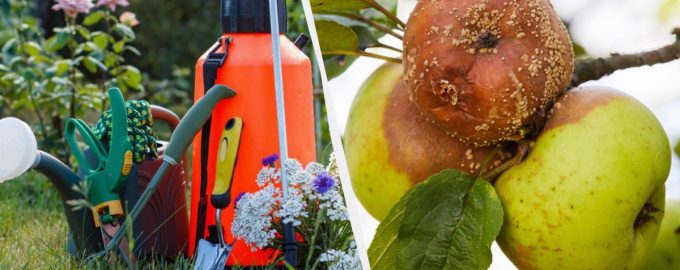 For å holde alle epler friske til frost, behandle epletrær med en spesiell blanding. Hvordan behandle frukttrær fra fruktråte / collage My, foto depositphotos.